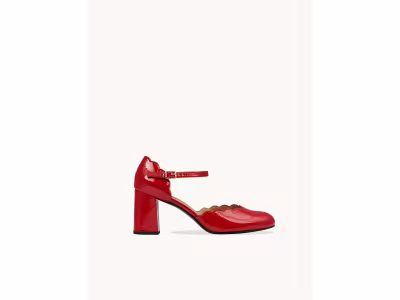L’audace du rouge, la signature Emzi. Nos babies Florita Red en cuir verni froissé éclatant, avec une découpe festonnée raffinée.